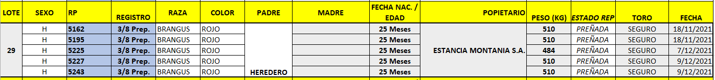 LOTE 29, HEMBRAS Remate Nucleo Genbra