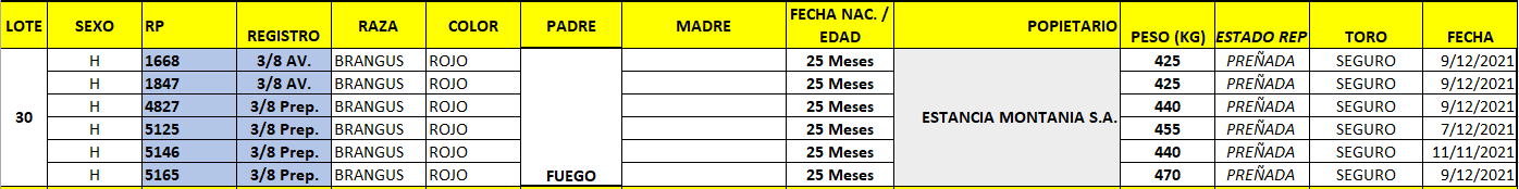 LOTE 30, HEMBRAS Remate Nucleo Genbra
