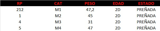 Hembra M1 preñada