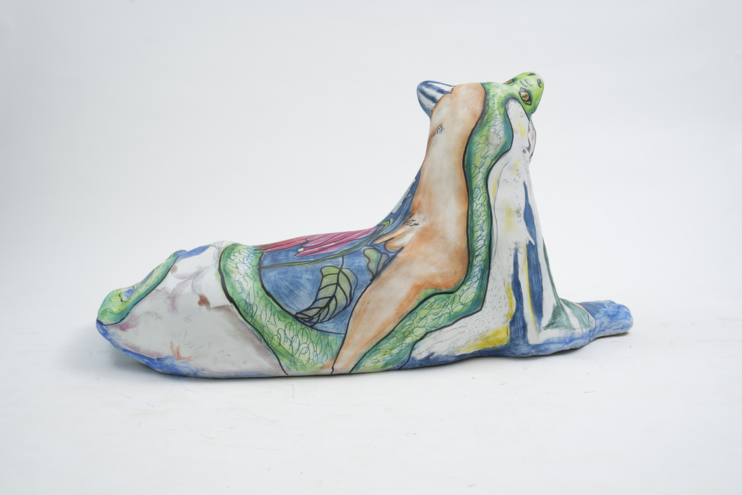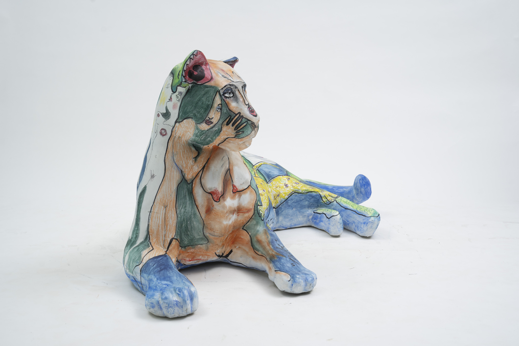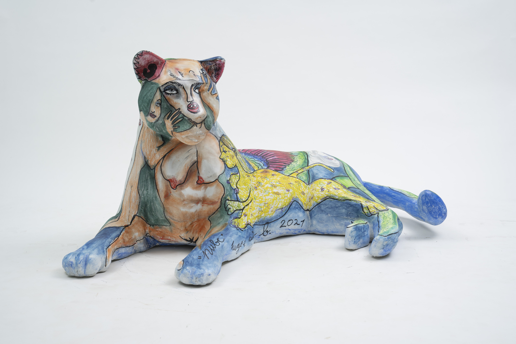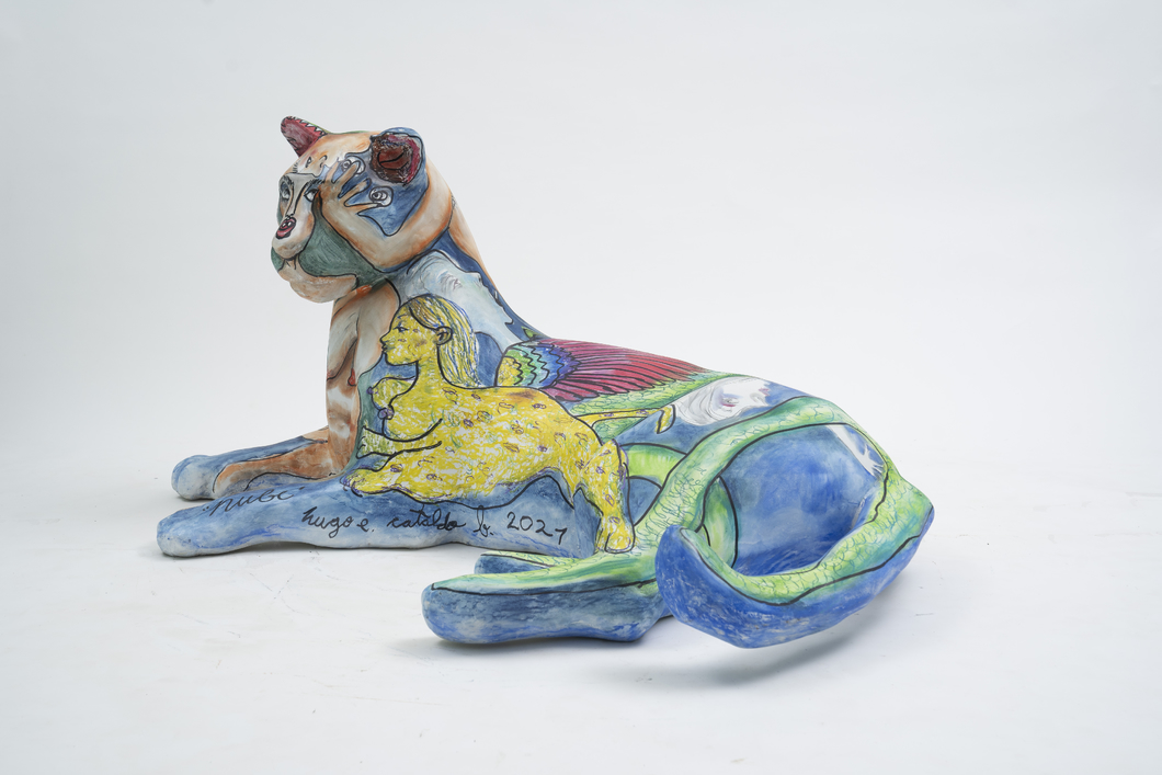 TÉCNICA: PASTEL Y MARCADOR SOBRE ESCULTURA DE RESINA.