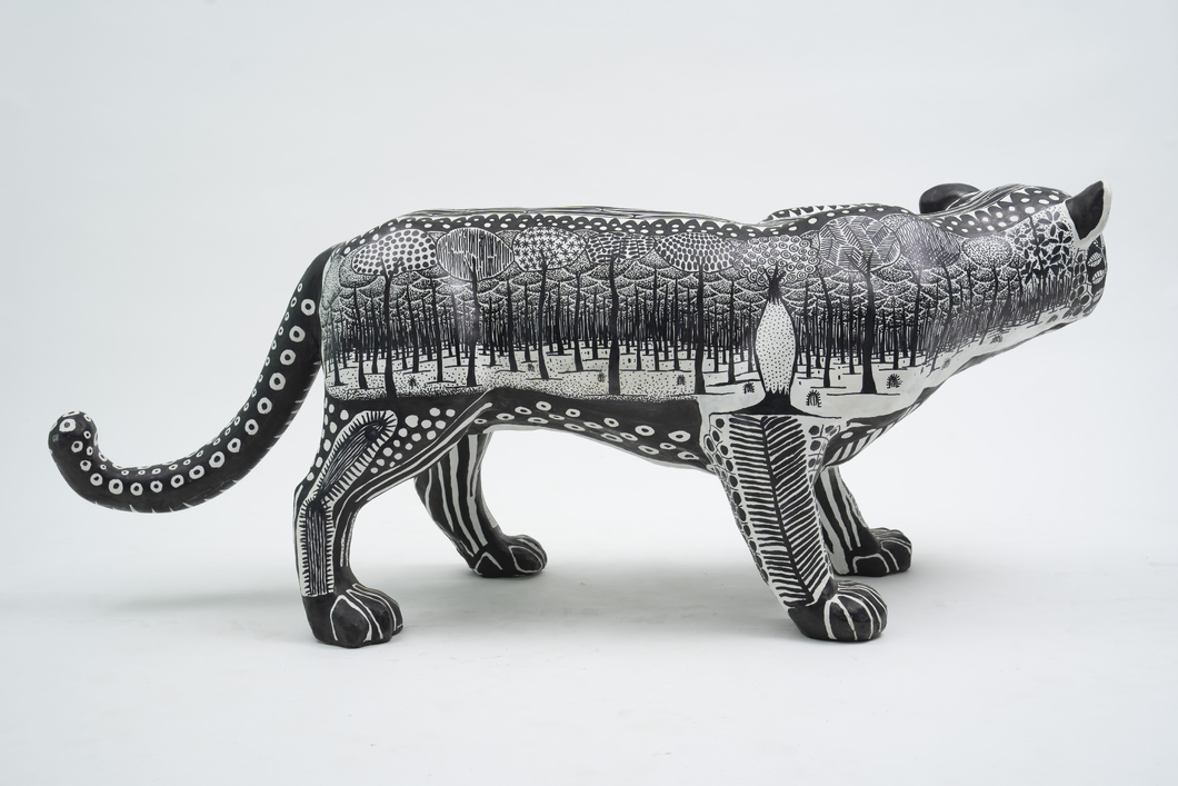EPÍGRAFE DE LA OBRA: CON ESTA OBRA BASADA EN EL BOSQUE CHAQUEÑO PRETENDO VISIBILIZAR QUE LOS YAGUARETÉS NECESITAN DEL BOSQUE PARA VIVIR, AL IGUAL QUE EL HOMBRE. PRETENDO QUE TODOS LOS PARAGUAYOS REFLEXIONEN ACERCA DE LA EXISTENCIA DE ESTE ANIMAL Y NO LO SIGAN MALTRATANDO Y PERSIGUIENDO. LA VIDA DEPENDE DE LOS BOSQUES Y DEBEMOS DE CUIDAR LO POCO QUE NOS QUEDA.