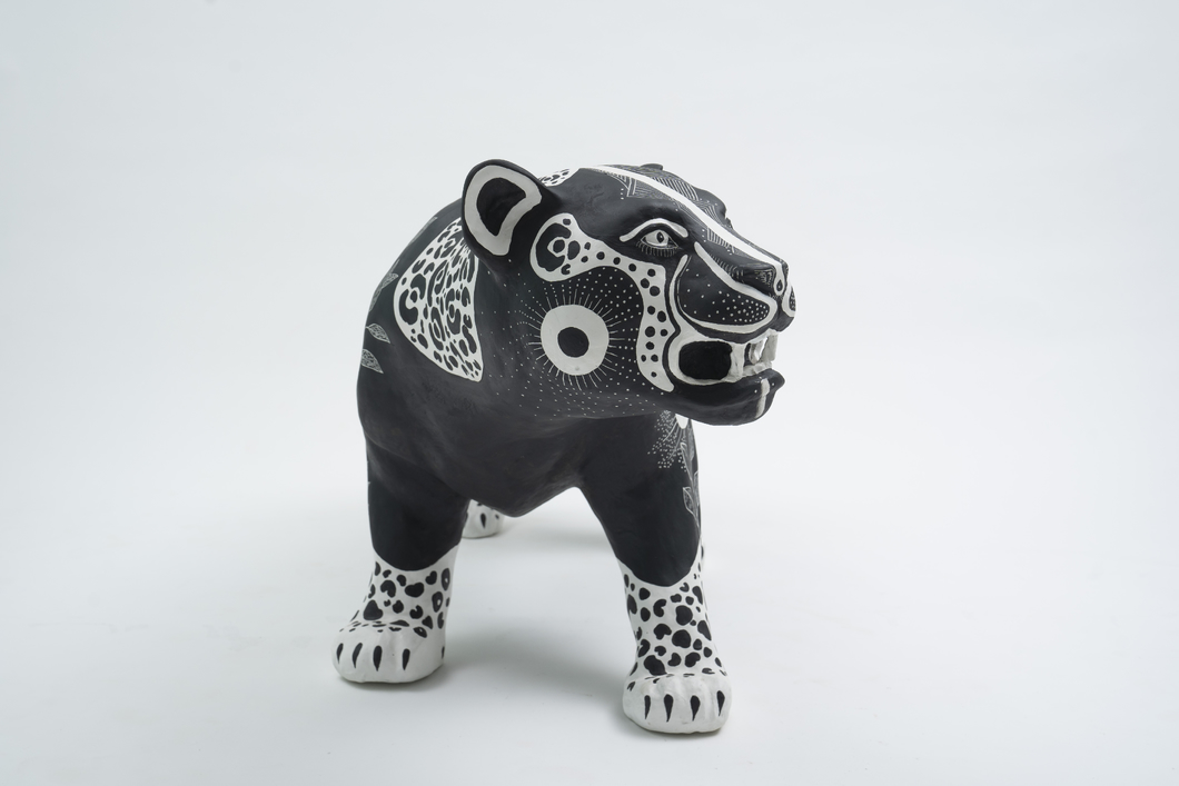 TECNICA: PINTURA NEGRA Y ESGRAFIADO SOBRE ESCULTURA EN RESINA.
