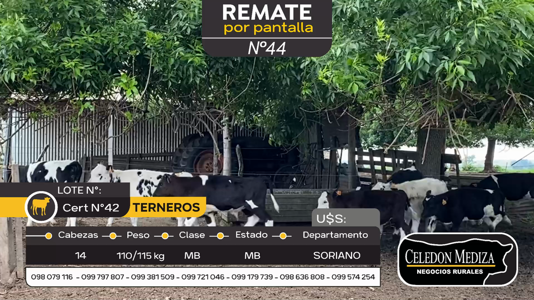 LOTE 3, 14 Terneros en José Enrique Rodó, Soriano