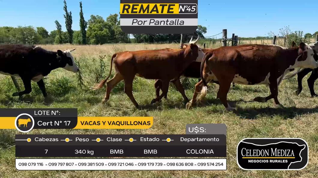 LOTE 44, 7 Vaquillonas y Vacas en Otra Localidad, Colonia