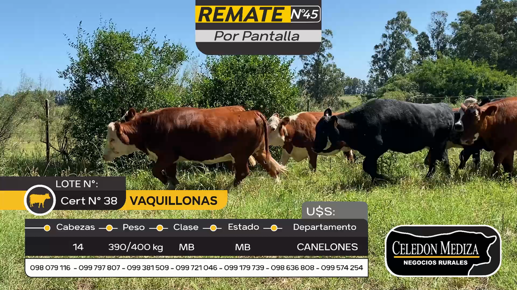 LOTE 42, 14 Vaquillonas en Otra Localidad, Canelones