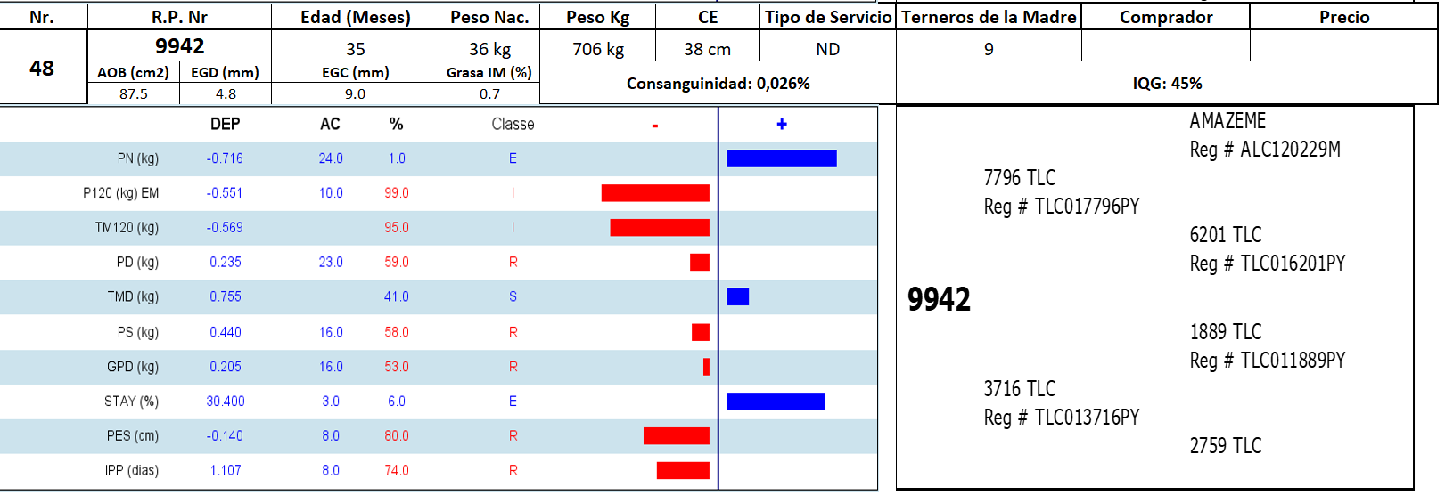 LOTE 48, Brahman Lote Anterior Volver al remate Ficha Contacto Ofertar Loma Plata - Ficha del Lote Identificador: #337266 Categoría: Toros Pedigree Raza Brahman Loma Plata - Ofertar Aún no tiene ofertas Plazo: Contado 30 días 45 días 60 días 90 días 120 días 180 días 2 Cuotas (30 y 60 días) 3 Cuotas (30, 60 y 90 días) 4 Cuotas (30,60,90 y 120 días) Su Oferta en Gs: − + Step: -500.000,00 / +500.000,00 Programar puja hasta: Programar puja hasta Aumentar puja programada 13000000 22000000 **Oferta por punta Iniciar sesión para ofertar Ofertar Compra por Gs 99.000.000 Ofertas Recibidas Gs Fecha/Hora Estado Este lote aún no tiene preofertas. ¿Estás seguro de comprar el LOTE Brahman por Gs 99000000 ? 78 Visualizaciones ClicData Contacto Empresa: Tamyca Chortitzer Nombre*: Teléfono* : E-mail* : Mensaje Enviar