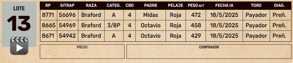 LOTE 13, VAQUILLAS CBO 4 PREÑADAS
