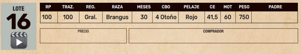 LOTE 16, TOROS BRANGUS 30 MESES Lote Anterior Volver al remate Lote Siguiente Ficha Contacto Ofertar Presidente Hayes - Ficha del Lote Identificador: #337821 Categoría: Toros Edad: 30 MESES Pedigree Plazo 12 cuotas Raza BRANGUS Información Genética RP 100 RP 100 CIRCUNFERENCIA ESCROTAL 41.5 PESO ACTUAL 750 PRECIO BASE 1300000.00 MOT 60 Presidente Hayes - Ofertar Aún no tiene ofertas Animales: 100 Plazo: Contado 30 días 45 días 60 días 90 días 120 días 180 días 2 Cuotas (30 y 60 días) 3 Cuotas (30, 60 y 90 días) 4 Cuotas (30,60,90 y 120 días) Su Oferta en Gs: (por 12 cuotas) − + Step: -5,00 / +5,00 Programar puja hasta: Programar puja hasta Aumentar puja programada 1300000.02 1300000.2 Iniciar sesión para ofertar Ofertar Detalle de la compra Cargando... Precio unitario: Precio Total: Comisión: Financiador: Total: Ofertas Recibidas Gs Fecha/Hora Estado Este lote aún no tiene preofertas. 10 Visualizaciones ClicData Contacto Empresa: Sola Marca SA Nombre*: Teléfono* : E-mail* : Mensaje Por informes y consultas +595981756870 Enviar