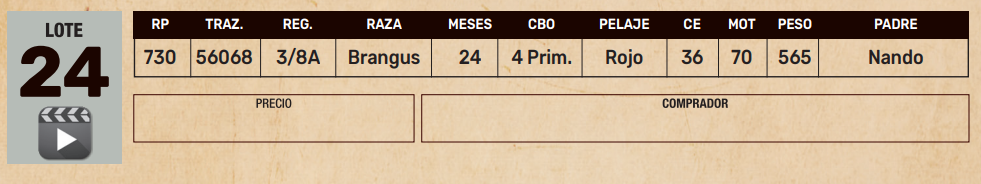 LOTE 24, TOROS BRANGUS 24 MESES Lote Anterior Volver al remate Lote Siguiente Ficha Contacto Ofertar Presidente Hayes - Ficha del Lote Identificador: #337829 Categoría: Toros Edad: 24 MESES Pedigree Plazo 12 cuotas Raza BRANGUS Información Genética RP 730 RP 730 PADRE NANDO CIRCUNFERENCIA ESCROTAL 36 PESO ACTUAL 565 PRECIO BASE 1300000.00 MOT 70 Presidente Hayes - Ofertar Aún no tiene ofertas Animales: 730 Plazo: Contado 30 días 45 días 60 días 90 días 120 días 180 días 2 Cuotas (30 y 60 días) 3 Cuotas (30, 60 y 90 días) 4 Cuotas (30,60,90 y 120 días) Su Oferta en Gs: (por 12 cuotas) − + Step: -5,00 / +5,00 Programar puja hasta: Programar puja hasta Aumentar puja programada 1200000.02 1200000.2 Iniciar sesión para ofertar Ofertar Detalle de la compra Cargando... Precio unitario: Precio Total: Comisión: Financiador: Total: Ofertas Recibidas Gs Fecha/Hora Estado Este lote aún no tiene preofertas. 9 Visualizaciones ClicData Contacto Empresa: Sola Marca SA Nombre*: Teléfono* : E-mail* : Mensaje Por informes y consultas +595981756870 Enviar