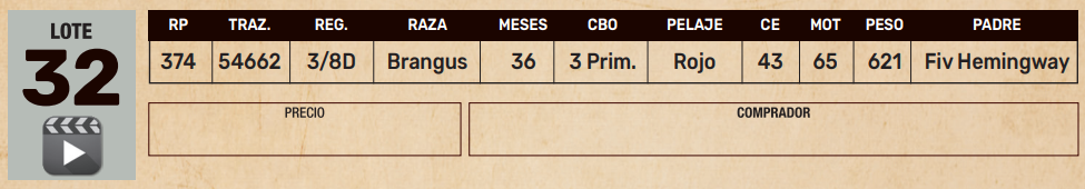 LOTE 32, TOROS BRANGUS 36 MESES Lote Anterior Volver al remate Lote Siguiente Ficha Contacto Ofertar Presidente Hayes - Ficha del Lote Identificador: #337837 Categoría: Toros Edad: 36 MESES Pedigree Plazo 12 cuotas Raza BRANGUS Información Genética RP 374 RP 374 PADRE FIV CIRCUNFERENCIA ESCROTAL 43 PESO ACTUAL 621 PRECIO BASE 1300000.00 MOT 65 Presidente Hayes - Ofertar Aún no tiene ofertas Animales: 374 Plazo: Contado 30 días 45 días 60 días 90 días 120 días 180 días 2 Cuotas (30 y 60 días) 3 Cuotas (30, 60 y 90 días) 4 Cuotas (30,60,90 y 120 días) Su Oferta en Gs: (por 12 cuotas) − + Step: -5,00 / +5,00 Programar puja hasta: Programar puja hasta Aumentar puja programada 1300000.02 1300000.2 Iniciar sesión para ofertar Ofertar Detalle de la compra Cargando... Precio unitario: Precio Total: Comisión: Financiador: Total: Ofertas Recibidas Gs Fecha/Hora Estado Este lote aún no tiene preofertas. 8 Visualizaciones ClicData Contacto Empresa: Sola Marca SA Nombre*: Teléfono* : E-mail* : Mensaje Por informes y consultas +595981756870 Enviar