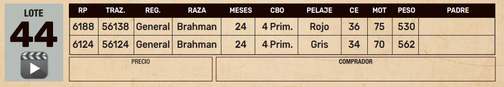 LOTE 44, TOROS BRAHMAN 24 MESES Lote Anterior Volver al remate Lote Siguiente Ficha Contacto Ofertar Presidente Hayes - Ficha del Lote Identificador: #337849 Cantidad: 2 Categoría: Toros Edad: 24 MESES Pedigree Plazo 12 cuotas Raza BRAHMAN Información Genética RP 6188 RP 6188 CIRCUNFERENCIA ESCROTAL 36 PESO ACTUAL 530 PRECIO BASE 1100000.00 MOT 75 RP 6124 RP 6124 CIRCUNFERENCIA ESCROTAL 34 PESO ACTUAL 562 PRECIO BASE 1100000.00 MOT 70 Presidente Hayes - Ofertar Aún no tiene ofertas Animales: 6188 6124 Plazo: Contado 30 días 45 días 60 días 90 días 120 días 180 días 2 Cuotas (30 y 60 días) 3 Cuotas (30, 60 y 90 días) 4 Cuotas (30,60,90 y 120 días) Su Oferta en Gs: (por 12 cuotas) − + Step: -50.000,00 / +50.000,00 Programar puja hasta: Programar puja hasta Aumentar puja programada 1200000 2100000 Iniciar sesión para ofertar Ofertar Compra por Gs 99.000.000 Detalle de la compra Cargando... Precio unitario: Precio Total: Comisión: Financiador: Total: Ofertas Recibidas Gs Fecha/Hora Estado Este lote aún no tiene preofertas. ¿Estás seguro de comprar el LOTE TOROS BRAHMAN 24 MESES por 12 cuotas de Gs 99000000 ? 6 Visualizaciones ClicData Contacto Empresa: Sola Marca SA Nombre*: Teléfono* : E-mail* : Mensaje Por informes y consultas +595981756870 Enviar