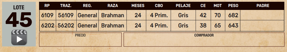 LOTE 45, TOROS BRAHMAN 24 MESES Lote Anterior Volver al remate Lote Siguiente Ficha Contacto Ofertar Presidente Hayes - Ficha del Lote Identificador: #337850 Cantidad: 2 Categoría: Toros Edad: 24 MESES Pedigree Plazo 12 cuotas Raza BRAHMAN Información Genética RP 6109 RP 6109 CIRCUNFERENCIA ESCROTAL 42 PESO ACTUAL 682 PRECIO BASE 1100000.00 MOT 70 RP 6202 RP 6202 CIRCUNFERENCIA ESCROTAL 38 PESO ACTUAL 643 PRECIO BASE 1100000.00 MOT 65 Presidente Hayes - Ofertar Aún no tiene ofertas Animales: 6109 6202 Plazo: Contado 30 días 45 días 60 días 90 días 120 días 180 días 2 Cuotas (30 y 60 días) 3 Cuotas (30, 60 y 90 días) 4 Cuotas (30,60,90 y 120 días) Su Oferta en Gs: (por 12 cuotas) − + Step: -50.000,00 / +50.000,00 Programar puja hasta: Programar puja hasta Aumentar puja programada 1200000 2100000 Iniciar sesión para ofertar Ofertar Compra por Gs 99.000.000 Detalle de la compra Cargando... Precio unitario: Precio Total: Comisión: Financiador: Total: Ofertas Recibidas Gs Fecha/Hora Estado Este lote aún no tiene preofertas. ¿Estás seguro de comprar el LOTE TOROS BRAHMAN 24 MESES por 12 cuotas de Gs 99000000 ? 10 Visualizaciones ClicData Contacto Empresa: Sola Marca SA Nombre*: Teléfono* : E-mail* : Mensaje Por informes y consultas +595981756870 Enviar