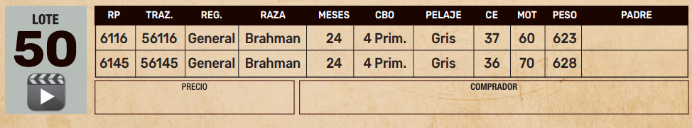 LOTE 50, TOROS BRAHMAN 24 MESES 🔥 🔥 🔥 Lote Anterior Volver al remate Ficha Contacto Ofertar Presidente Hayes - Ficha del Lote Identificador: #337855 Cantidad: 2 Categoría: Toros Edad: 24 MESES Pedigree Plazo 12 cuotas Raza BRAHMAN Información Genética RP 6116 RP 6116 CIRCUNFERENCIA ESCROTAL 37 PESO ACTUAL 623 PRECIO BASE 1100000.00 MOT 60 RP 6145 RP 6145 CIRCUNFERENCIA ESCROTAL 36 PESO ACTUAL 628 PRECIO BASE 1100000.00 MOT 70 Presidente Hayes - Ofertar Aún no tiene ofertas Animales: 6116 6145 Plazo: Contado 30 días 45 días 60 días 90 días 120 días 180 días 2 Cuotas (30 y 60 días) 3 Cuotas (30, 60 y 90 días) 4 Cuotas (30,60,90 y 120 días) Su Oferta en Gs: (por 12 cuotas) − + Step: -5,00 / +5,00 Programar puja hasta: Programar puja hasta Aumentar puja programada 1100000.02 1100000.2 Iniciar sesión para ofertar Ofertar Detalle de la compra Cargando... Precio unitario: Precio Total: Comisión: Financiador: Total: Ofertas Recibidas Gs Fecha/Hora Estado Este lote aún no tiene preofertas. 15 Visualizaciones ClicData Contacto Empresa: Sola Marca SA Nombre*: Teléfono* : E-mail* : Mensaje Por informes y consultas +595981756870 Enviar