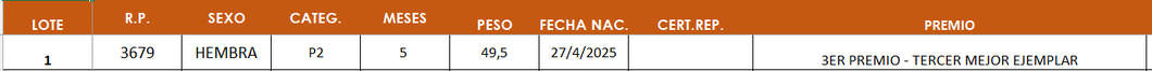 3ER PREMIO - TERCER MEJOR EJEMPLAR