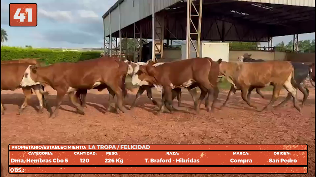 HEMBRAS DE BUENA ESTRUCTURA, PAREJAS EN CALIDAD Y ESTADO, EN SU MAYORIA TIPO BRAFORD, PRODUCTO DE MONTA NATURAL CON TOROS BRAFORD REGISTRADOS.