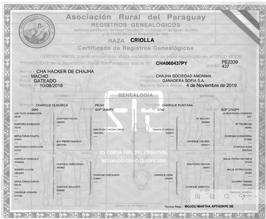 | Raza | Criollo Gateado |