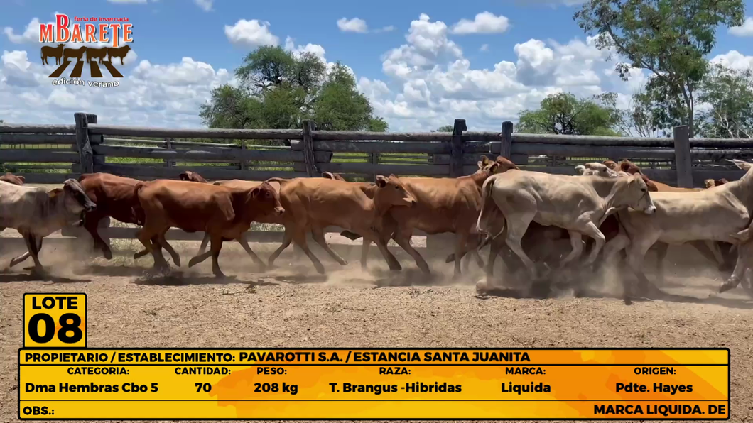 MARCA LIQUIDA. DESMAMANTES HEMBRAS CBO. 5. HÍBRIDAS (23) Y TIPO BRANGUS (45) EN SU MAYORIA. PAREJAS EN TIPO Y TAMAÑO. SON PRODUCTOS DE IATF Y REPASO CON TOROS NELORE Y BRANGUS. PARICIÓN OTOÑO 2024 Y FUERON DESTETADAS EN SEPTIEMBRE 2025. EXCELENTE LOTE PARA FUTURAS MATRICES O UNA BUENA INVERNADA EN PASTURAS. PESO MINIMO 182 KG, PESO MAXIMO 250 KG. IDENTIFICACIÓN CBO. 6 COSTILLA IZQUIERDA. OBSERVACIÓN: (2) ANIMALES SIN SIAP.