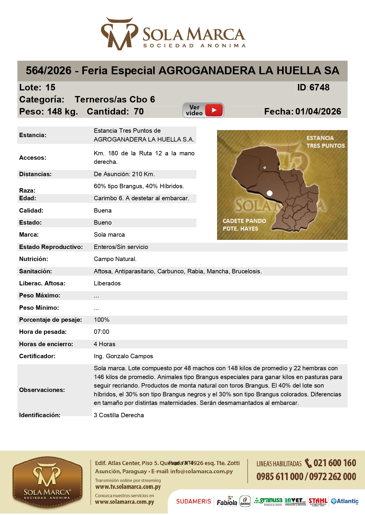 LOTE 15, Lote 15 Lote Anterior Volver al remate Lote Siguiente Ficha Contacto Ofertar Paraguarí - Ficha del Lote Identificador: #365673 Cantidad: 70 Categoría: Terneros/as Cbo 6 Pedigree Ofertar Fecha de cierre: 11 de Abril a las 16:00hs. Aún no tiene ofertas Plazo: Contado 30 días 45 días 60 días 90 días 120 días 180 días 2 Cuotas (30 y 60 días) 3 Cuotas (30, 60 y 90 días) 4 Cuotas (30,60,90 y 120 días) Su Oferta en Gs: − + Step: -100,00 / +100,00 Programar puja hasta: Programar puja hasta Aumentar puja programada 25500 27300 **Oferta al kg Iniciar sesión para ofertar Ofertar Compra por Gs 99.000.000 Ofertas Recibidas Gs Fecha/Hora Estado Este lote aún no tiene preofertas. ¿Estás seguro de comprar el Lote 15 por Gs 99000000 ? Contacto Empresa: Sola Marca SA Nombre*: Teléfono* : E-mail* : Mensaje Por informes y consultas +595981756870 Enviar Registrese gratis Este contenido Exclusivo está disponible sólo para usuarios registrados Ingresar