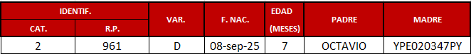 | Raza | BRAFORD |
